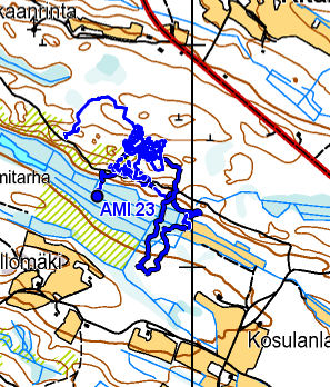 Ajo oli todella katkonaista, en tiedä johtuiko se ajettavasta, sateesta vai molemmista. Jänis pykäisi toisella hiekkatiellä pätkän ja koira hukkasi jäljen taas, emme lähteneet neuvomaan sitä koska matkaa oli useita satoja metrejä.