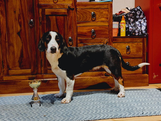 ja olipa Väinö sitten jopa VSP käyttöluokan koira saaden ruusukkeen. Olen myös iloinen kaverien puolesta: Parin kaverin koira oli koko näyttelyn toiseksi paras, ja toinen kaveri voitti kasvattajaryhmät. Oli mukava viikonloppu.